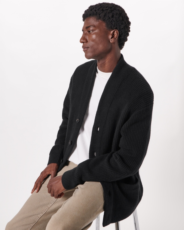 mens shawl cardigan black